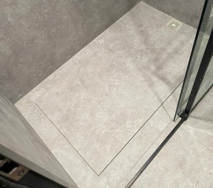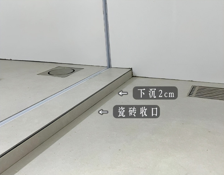 美观且实用:地面抬高约2厘米,与淋浴区内部形成高低差,这样既能有效阻水,又不影响地砖的整体感,视觉效果简洁大方。